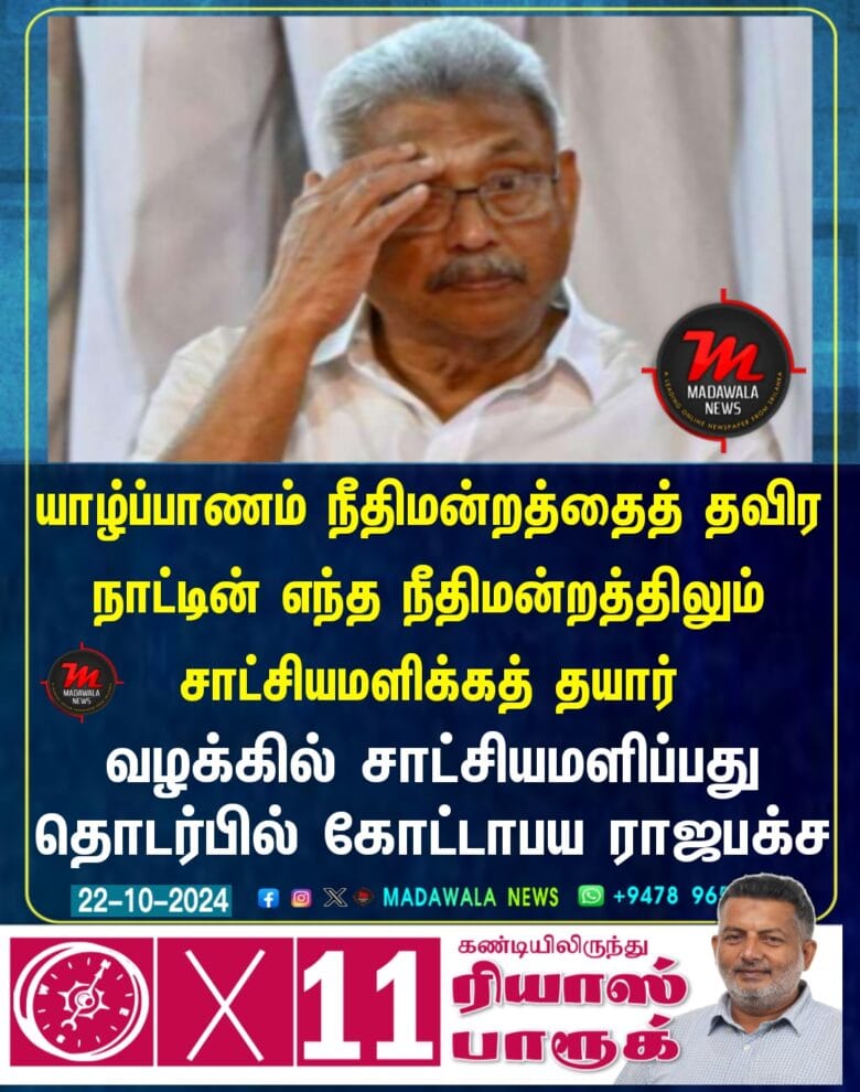 யாழ்ப்பாணம் நீதிமன்றத்தைத் தவிர நாட்டின் எந்த நீதிமன்றத்திலும் சாட்சியமளிக்கத் தயார் – வழக்கில் சாட்சியமளிப்பது தொடர்பில் கோட்டாபய ராஜபக்ச