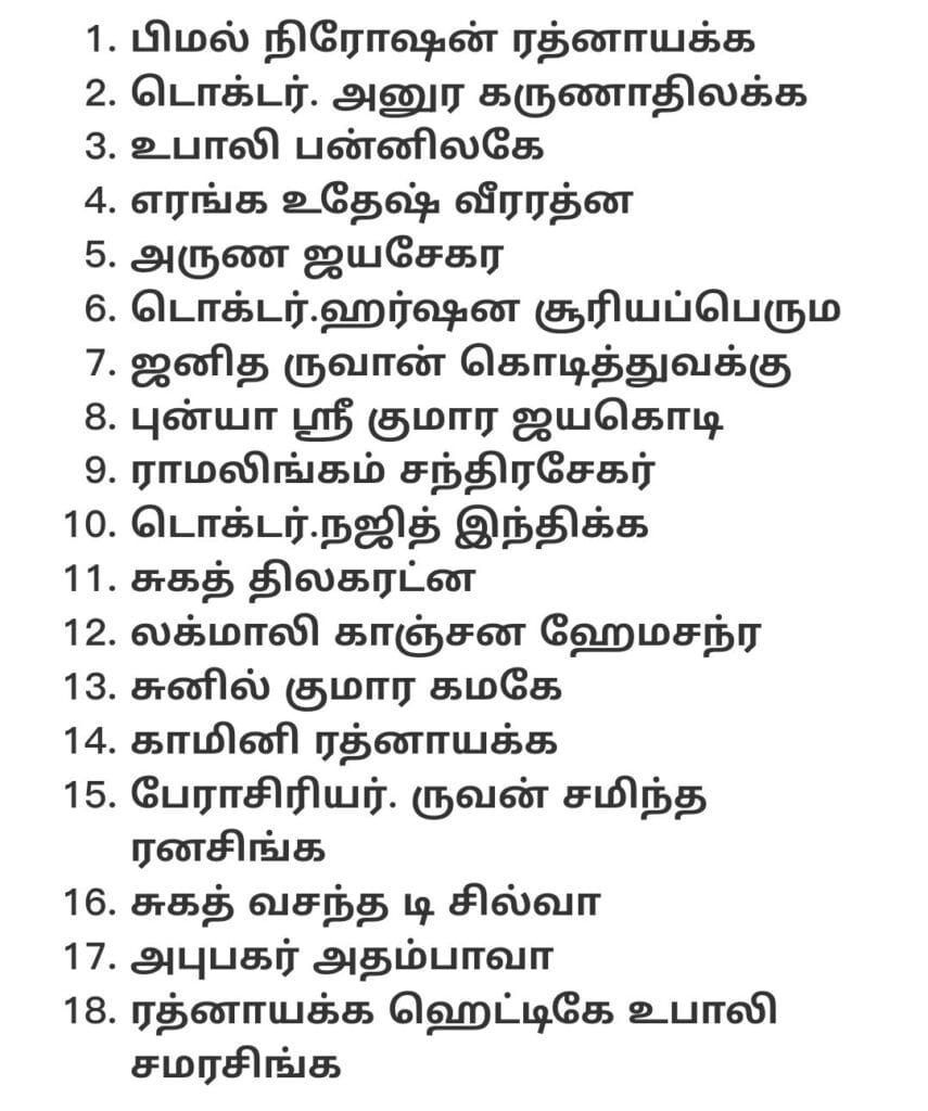 இதன்படி, தேசிய மக்கள் சக்தியினால் தேசியப் பட்டியல் ஆசனங்களுக்கு பரிந்துரைக்கப்பட்ட 18 நபர்களின் பெயர்கள் பின்வருமாறு,