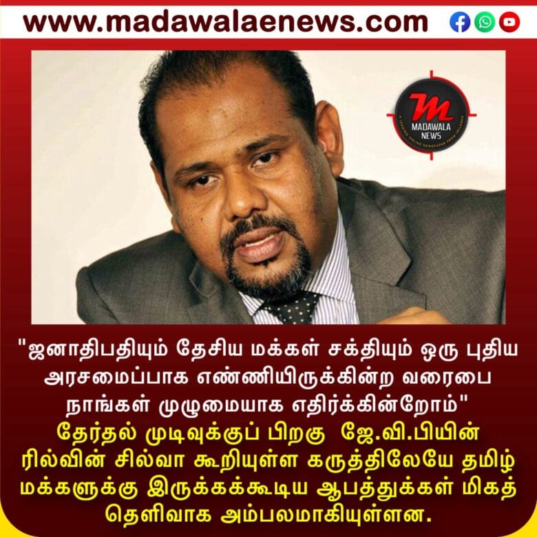 தேர்தல் முடிவுக்குப் பிறகு கூட ஜே.வி.பியின் பொதுச்செயலாளர் ரில்வின் சில்வா தங்களது கட்சிக்கு வடக்கில் ஆசனங்கள் கிடைத்துள்ளன எனவும் இனவாதத்தை மக்கள் நிராகரித்துள்ளனர் எனவும் சொல்லியுள்ளார். அந்தக் கருத்திலேயே தமிழ் மக்களுக்கு இருக்கக்கூடிய ஆபத்துக்கள் மிகத் தெளிவாக அம்பலமாகியுள்ளன.