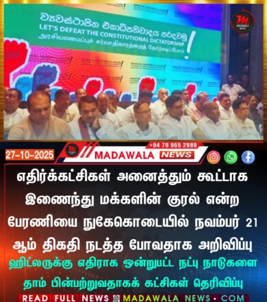 எதிர்க்கட்சிகள் அனைத்தும் கூட்டாக இணைந்து மக்களின் குரல் என்ற பேரணியை நுகேகொடையில் நவம்பர் 21 ஆம் திகதி நடத்த போவதாக அறிவிப்பு