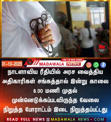 நாடளாவிய ரீதியில் அரச வைத்திய அதிகாரிகள் சங்கத்தால் இன்று காலை 8.00 மணி முதல் முன்னெடுக்கப்படவிருந்த வேலை நிறுத்த போராட்டம் இடை நிறுத்தப் பட்டது .