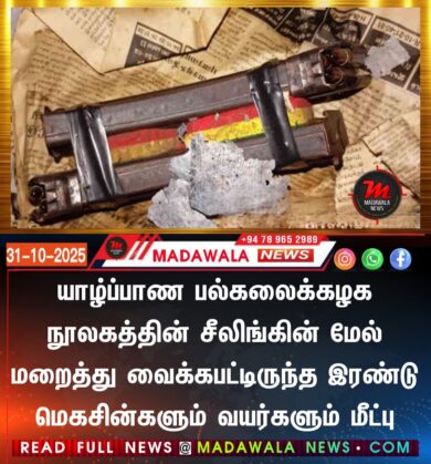 யாழ்ப்பாண பல்கலைக்கழக நூலகத்தின் சீலிங்கின் மேல் மறைத்து வைக்கபட்டிருந்த இரண்டு மெகசின்களும் வயர்களும் மீட்பு