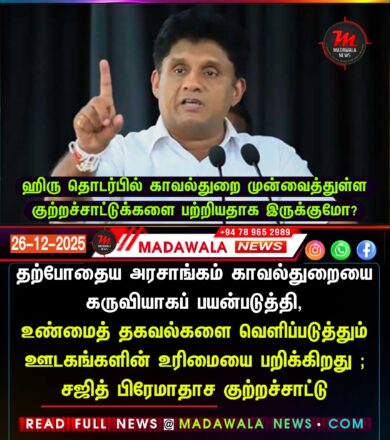 தற்போதைய அரசாங்கம் காவல்துறையை கருவியாகப் பயன்படுத்தி, உண்மைத் தகவல்களை வெளிப்படுத்தும் ஊடகங்களின் உரிமையை பறிக்கிறது ; சஜித்