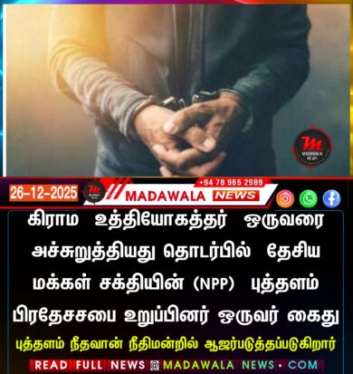 கிராம உத்தியோகத்தர் ஒருவரை அச்சுறுத்தியது தொடர்பில் தேசிய மக்கள் சக்தியின் (NPP) புத்தளம் பிரதேச சபை உறுப்பினர் ஒருவர் கைது