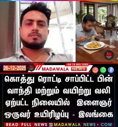 கொத்து ரொட்டி சாப்பிட்ட பின் வாந்தி மற்றும் வயிற்று வலி ஏற்பட்ட நிலையில் இளைஞர் ஒருவர் உயிரிழப்பு – இலங்கை