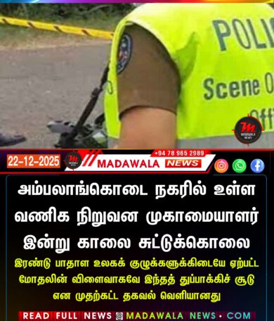 அம்பலாங்கொடை நகரில் உள்ள வணிக நிறுவன முகாமையாளர் இன்று காலை சுட்டுக்கொலை