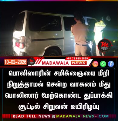 பொலிஸாரின் சமிக்ஞையை மீறி நிறுத்தாமல் சென்ற வாகனம் மீது பொலிஸார் மேற்கொண்ட துப்பாக்கி சூட்டில் சிறுவன் உயிரிழப்பு