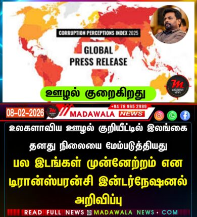 டிரான்ஸ்பரன்சி இன்டர்நேஷனல் அமைப்பின் 2025ஆம் ஆண்டுக்கான உலகளாவிய ஊழல்…