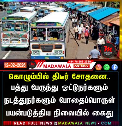 கொழும்பில் திடீர் சோதனை.. பத்து பேருந்து ஓட்டுநர்களும் நடத்துநர்களும் போதைப்பொருள் பயன்படுத்திய நிலையில் கைது