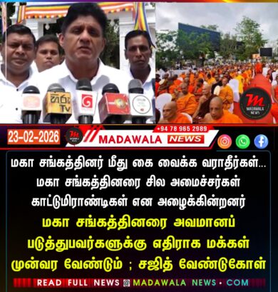 மகா சங்கத்தினர் மீது கை வைக்க வராதீர்கள்… மகா சங்கத்தினரை சில அமைச்சர்கள் காட்டுமிராண்டிகள் என அழைக்கின்றனர்- மகா சங்கத்தினரை அவமானப்படுத்துபவர்களுக்கு எதிராக மக்கள் முன்வர வேண்டும் ; சஜித் வேண்டுகோள்