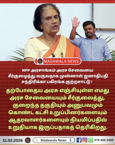 NPP அரசாங்கம் அரச சேவையை சீர்குழைத்துவருவதாக முன்னாள் ஜனாதிபதி பகிரங்க குற்றசாட்டு !