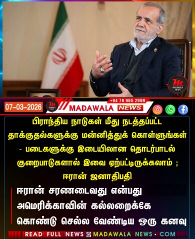 UAE உள்ளிட்ட அரபு நாடுகள் மீதான ஈரானின் தாக்குதலை கண்டித்த இலங்கை ஜனாதிபதி ; எமிரேட்ஸ் நியுஸ் ஏஜன்ஸி தகவல் ..
