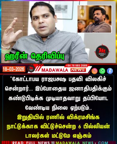 “கோட்டாபய ராஜபக்ஷ பதவி விலகிச் சென்றார்… இப்போதைய ஜனாதிபதிக்கும் கண்டுபிடிக்க முடியாதவாறு தப்பியோட வேண்டிய நிலை ஏற்படும்.. இறுதியில் ரணில் விக்ரமசிங்க நாட்டுக்காக விட்டுச்சென்ற 6 பில்லியன் டாலர்கள் மட்டுமே எஞ்சும்