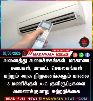 அனைத்து அமைச்சகங்கள், மாகாண சபைகள், மாவட்ட செயலகங்கள் மற்றும் அரசு நிறுவனங்களும் மாலை 3 மணிக்குள் A/C குளிரூட்டிகளை அணைக்குமாறு சுற்றறிக்கை