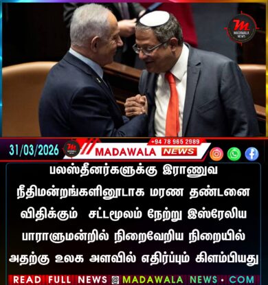 பலஸ்தீனர்களுக்கு இராணுவ நீதிமன்றங்களினூடாக மரண தண்டனை விதிக்கும் சட்டமூலம் நேற்று இஸ்ரேலிய பாராளுமன்றில் நிறைவேறிய நிறையில் அதற்கு உலக அளவில் எதிர்ப்பும் கிளம்பியது