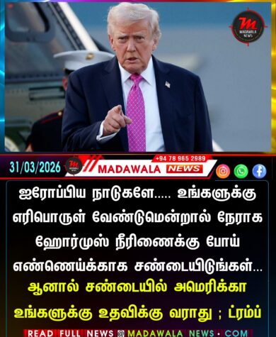 ஐரோப்பிய நாடுகளே… உங்களுக்கு எரிபொருள் வேண்டுமென்றால் நேராக ஹோர்முஸ் நீரிணைக்கு போய் எண்ணெய்க்காக சண்டையிடுங்கள்… ஆனால் அமெரிக்கா உங்களுக்கு உதவிக்கு வராது ; ட்ரம்ப்