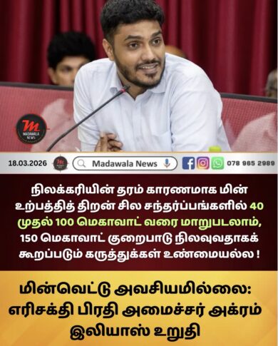மின்வெட்டு அவசியமில்லை: எரிசக்தி பிரதி அமைச்சர் அக்ரம் இலியாஸ் உறுதி