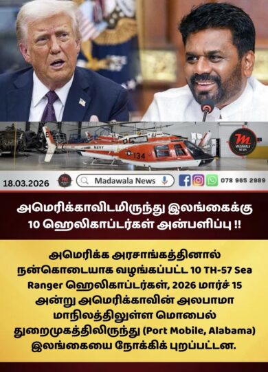 அமெரிக்காவிடமிருந்து இலங்கைக்கு 10 ஹெலிகாப்டர்கள் அன்பளிப்பு !!