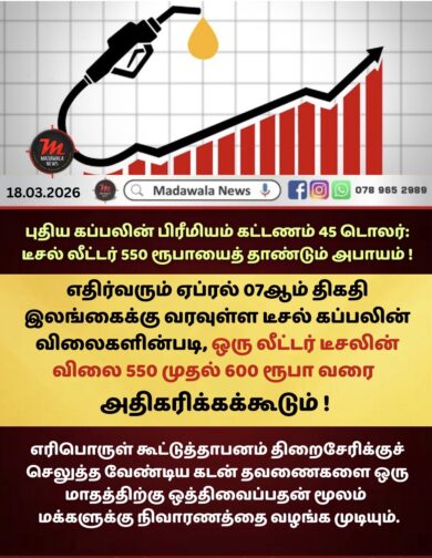 புதிய கப்பலின் பிரீமியம் கட்டணம் 45 டொலர்: டீசல் லீட்டர் 550 ரூபாயைத் தாண்டும் அபாயம் !