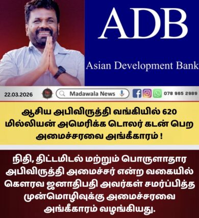 ஆசிய அபிவிருத்தி வங்கியில் 620 மில்லியன் அமெரிக்க டொலர் கடன் பெற அமைச்சரவை அங்கீகாரம் !