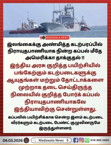 இலங்கை கடற்பரப்பிற்கு அப்பால் அமெரிக்காவின் தாக்குதலுக்குள்ளான போர் கப்பலில்…
