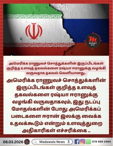 அமெரிக்க ராணுவச் சொத்துக்களின் இருப்பிடங்கள் குறித்த உளவுத் தகவல்களை ரஷ்யா ஈரானுக்கு வழங்கி வருவதாக தகவல் வெளியானது..