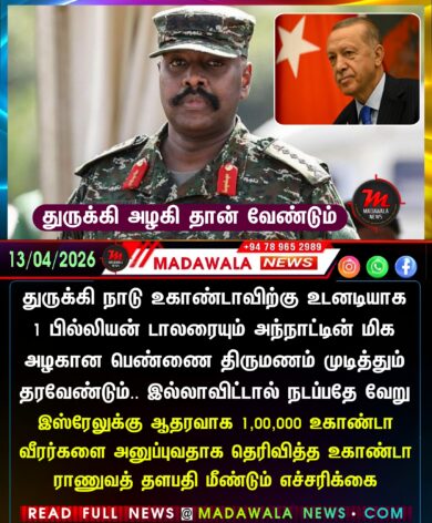 துருக்கி நாடு உகாண்டாவிற்கு உடனடியாக 1 பில்லியன் டாலரையும் அந்நாட்டின் மிக அழகான பெண்ணை திருமணம் முடித்தும் தரவேண்டும்.. இல்லாவிட்டால் நடப்பதே வேறு – இஸ்ரேலுக்கு ஆதரவாக 1,00,000 உகாண்டா வீரர்களை அனுப்புவதாக தெரிவித்த உகாண்டா ராணுவத் தளபதி மீண்டும் எச்சரிக்கை