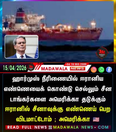 சர்வதேச ஊடக அறிக்கைகளின்படி, ஹார்முஸ் ஜலசந்தியை அமெரிக்கா முடக்கியுள்ள…