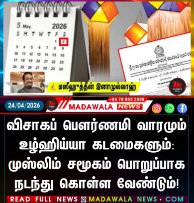 விசாகப் பெளர்ணமி வாரமும் உழ்ஹிய்யா கடமைகளும்: முஸ்லிம் சமூகம் பொறுப்பாக நடந்து கொள்ள வேண்டும்!எதிர்வரும் மே மாதம் 28 ஆம் திகதி ஹஜ்…