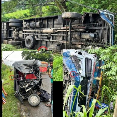 பஸ் ஒன்றும் முச்சக்கர வண்டியொன்றும் நேருக்கு நேர் மோதியதில் 27 பேர் காயம்.